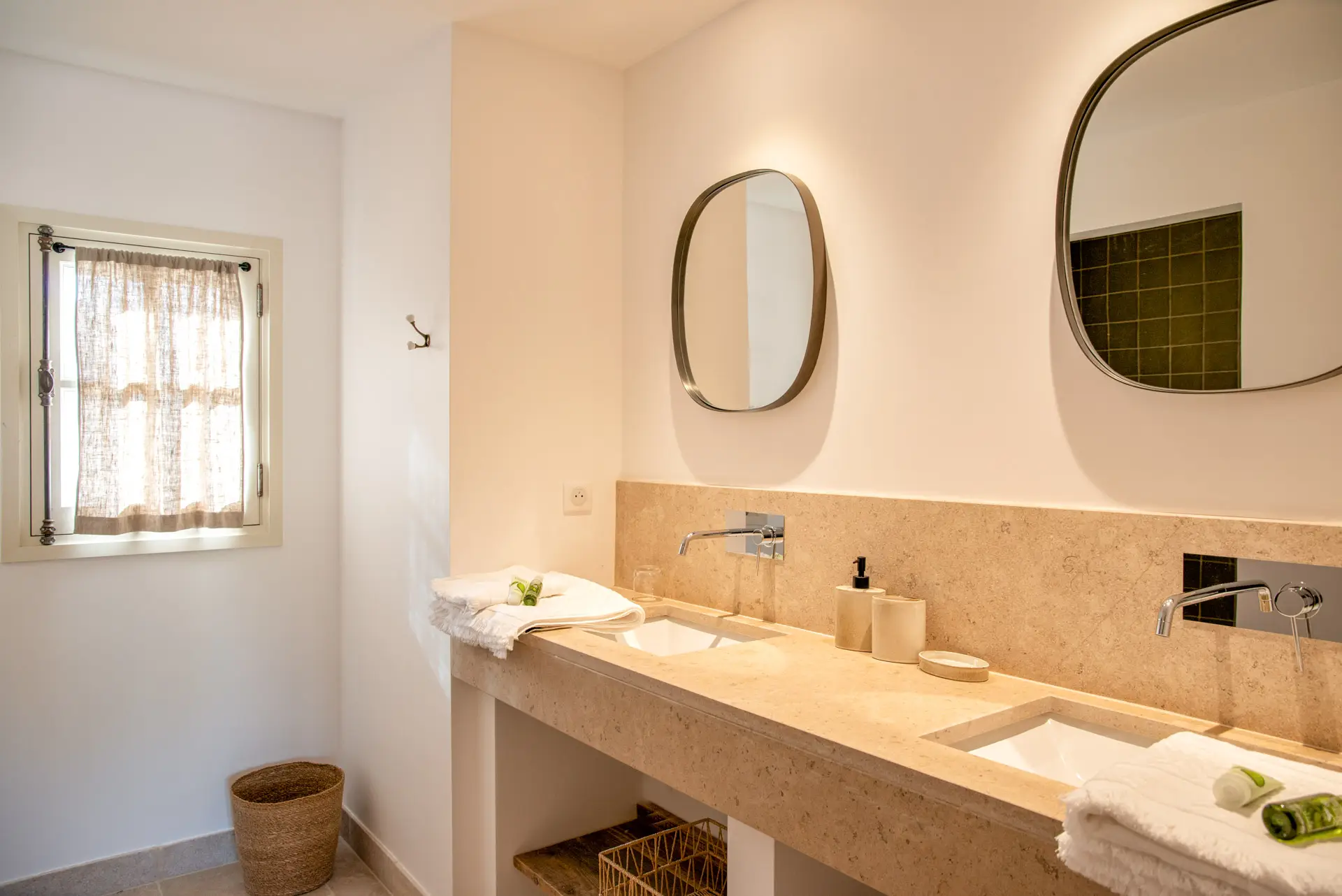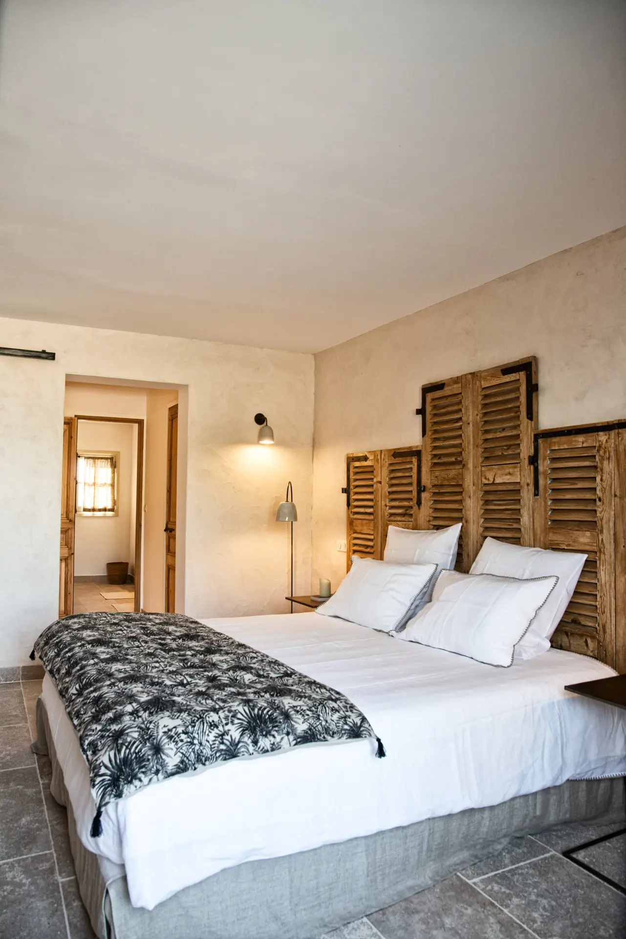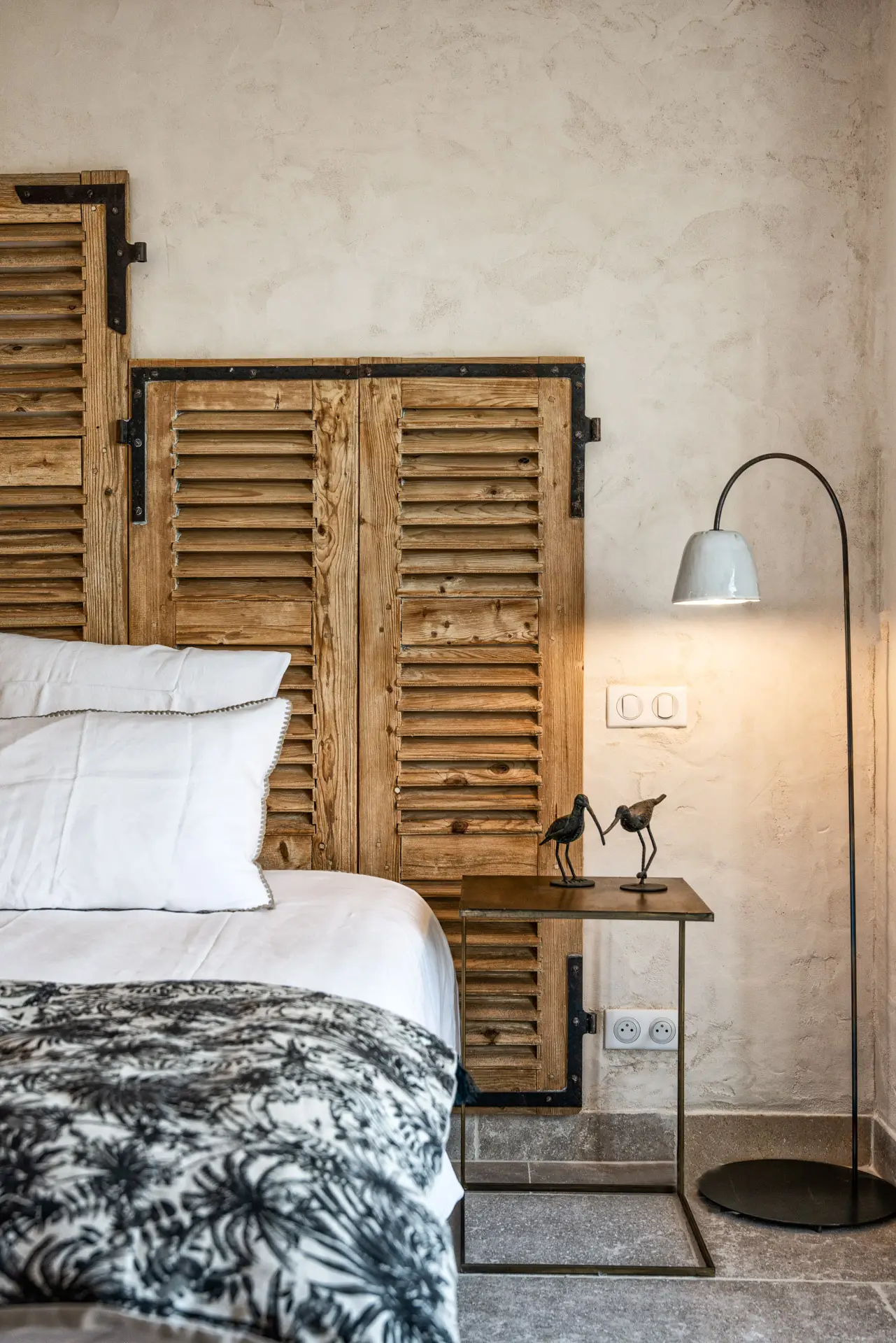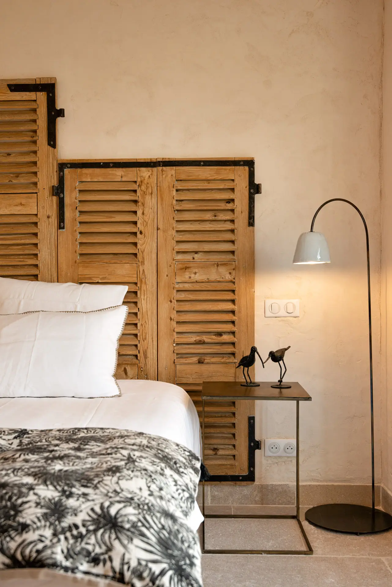 Cette chambre élégante bénéficie des rayons du soleil levant. Un espace a été aménagé pour accueillir un enfant, si toutefois vous étiez un couple d’amoureux, cette petite chambre sera joliment éclipsée par une impressionnante porte coulissante en bois d’origine.