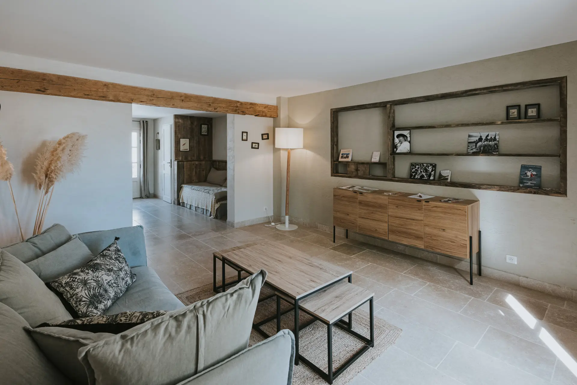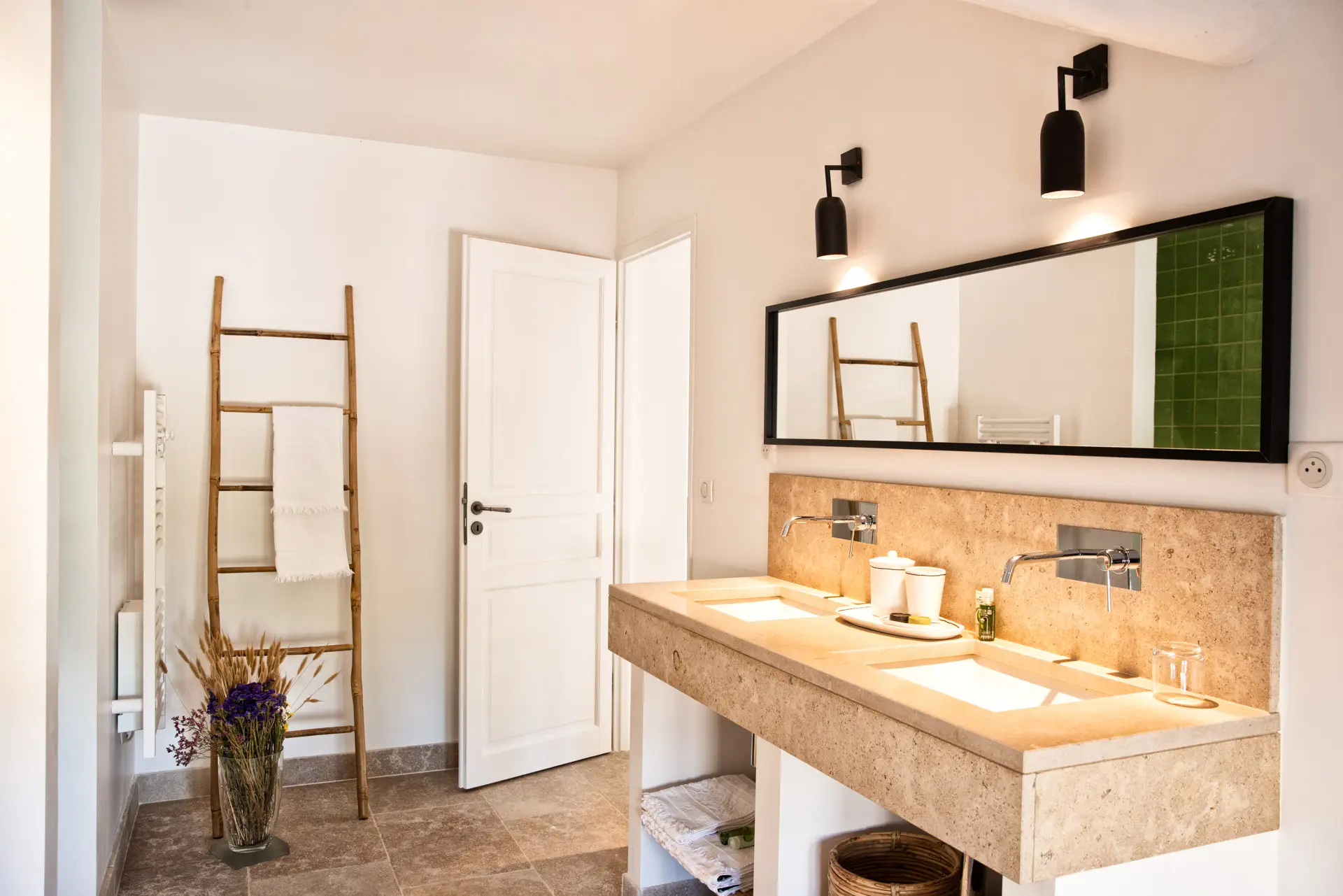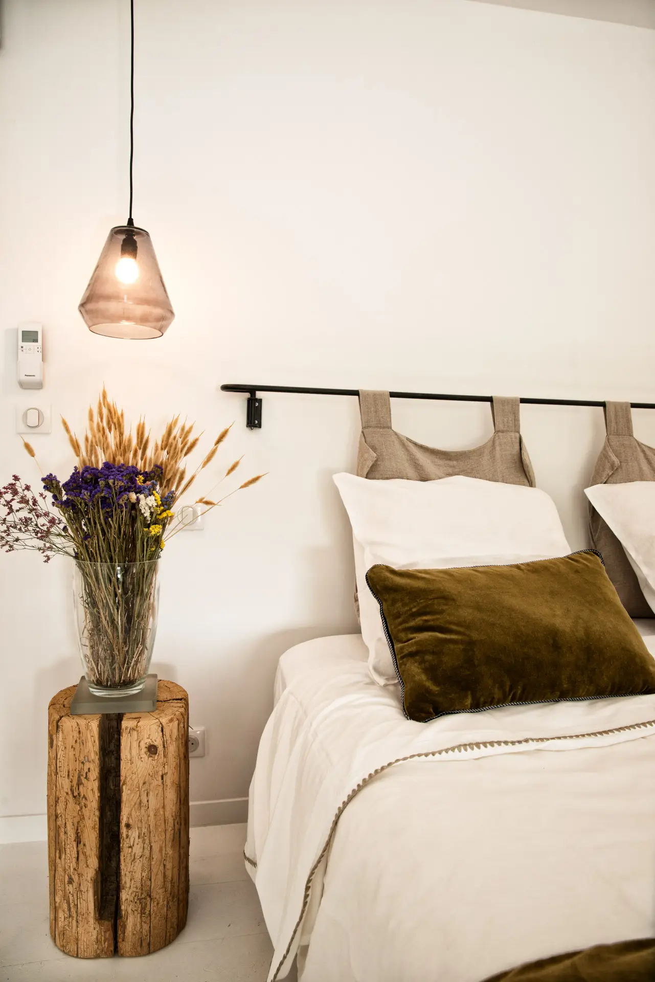 Cette jolie chambre aux parquets blanchis ne pourra qu’éveiller vos sens, entre lins, velours et boiseries, vous serez immergé dans un décor harmonieux et confortable. Une salle de bain attenante vous offre une vue reposante sur la campagne.